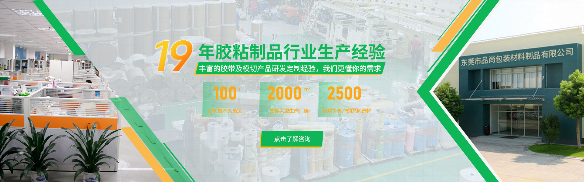 品尚包裝坐落于"世界工廠"珠三角核心腹地東莞市東坑鎮(zhèn)工業(yè)區(qū),自2006年創(chuàng)立以來(lái),始終深耕膠粘制品領(lǐng)域,現(xiàn)已發(fā)展成為集研發(fā)創(chuàng)新、智能制造、營(yíng)銷網(wǎng)絡(luò)、售后維保于一體的現(xiàn)代化全產(chǎn)業(yè)鏈企業(yè);